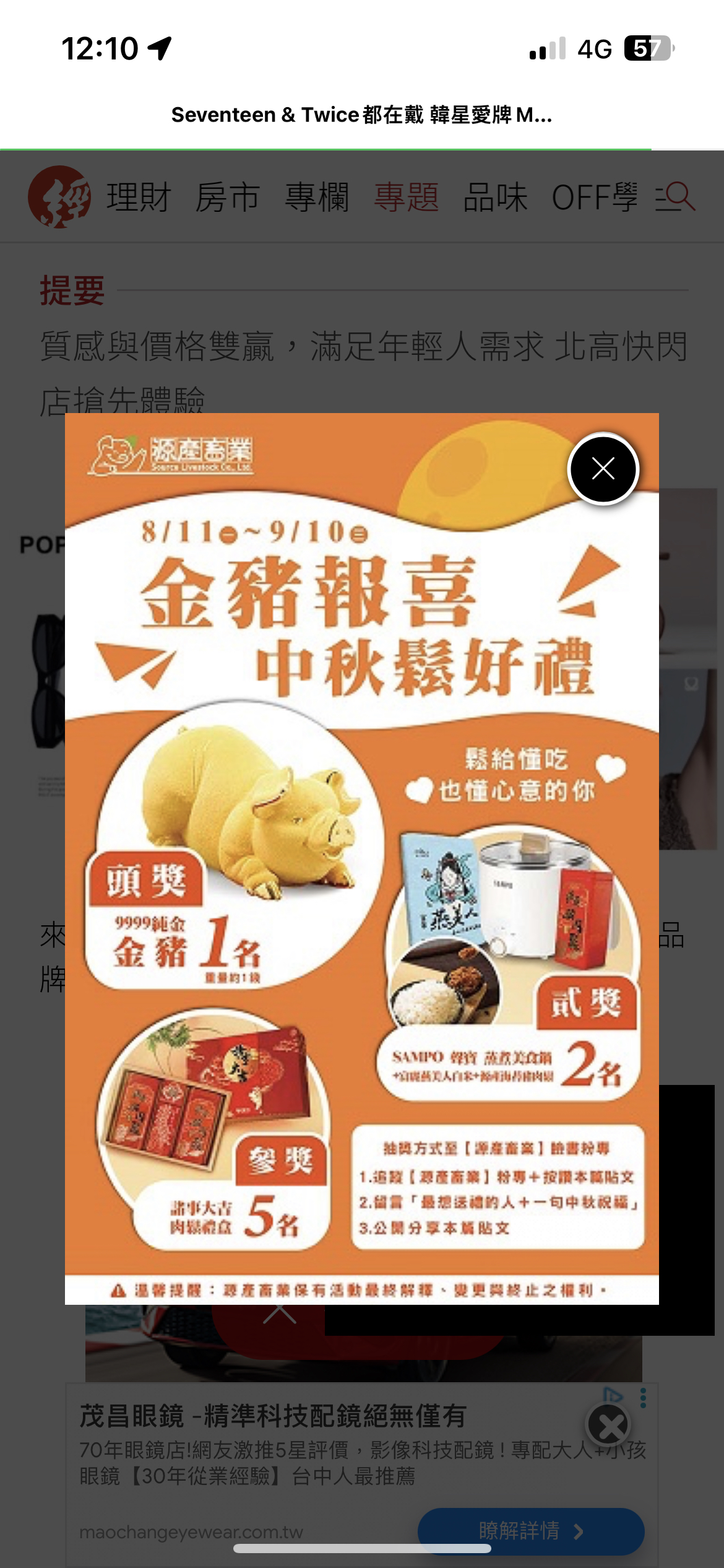| 地點 | FB貼文【金豬報喜・中秋鬆好禮】、經濟日報廣編品牌祭「金豬報喜」抽金飾。 |