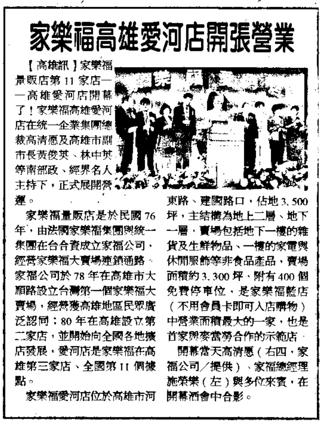 1996/10/07 經濟日報:家樂福高雄愛河店開張營業